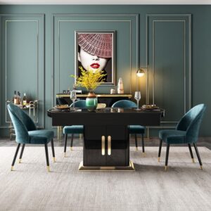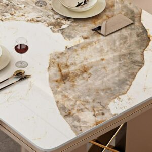 Chất liệu: hợp kim mạ vàng PVD + mặt bàn đá