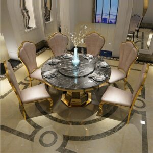 Chất liệu: hợp kim mạ vàng PVD + mặt bàn đá