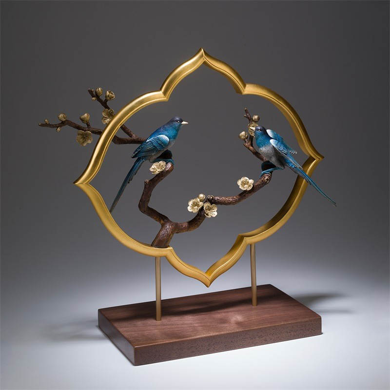 Đôi chim hỷ tước bằng đồng để bàn sang trọng thiết kế tinh xảo