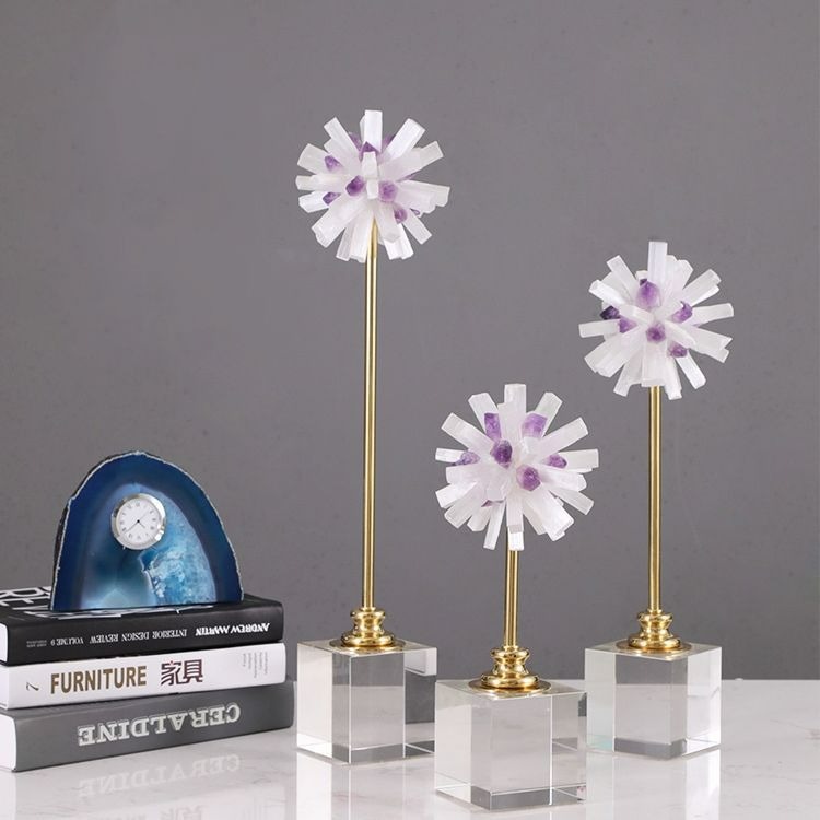 Quả cầu gắn đá pha lê tự nhiên trang trí