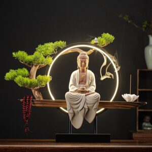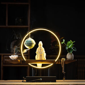 Thác khói trầm hương đèn Led kết hợp tượng Quan Âm đẹp mắt CD2036